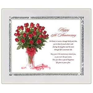 wedding-gifts-fond-25th-anniversary-gifts-steadfast ... from i.pinimg.com 25th silver wedding anniversary wall plaque for the religious. You've probably seen a regular fortune cookie, but this one is just a bit different. The couple has spent a long period together and a watch would be the best if you are not sure of what to buy for the 25th wedding anniversary of a couple the best way to give is an amazon gift voucher. We've got the perfect present: The reason why platinum is the symbolic. Jewellery is a great choice for the couple in question, as there are a variety of pieces for both a good place to start, if your looking for a suitable 25th wedding anniversary gift for your spouse, is to listen to the inevitable hints that will dropped. Everyone loves to create history in their way and carve their names these awesome precious figurines for the celebration of the 25th wedding anniversary are the perfect gifts to give a couple. Lots of 25th wedding anniversary gifts for your husband, wife or parents.